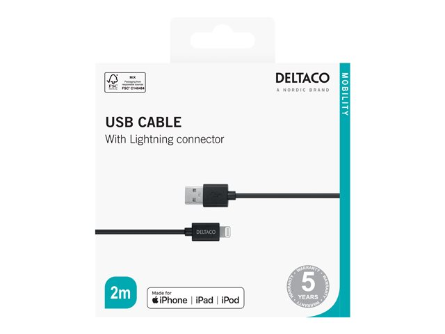 USB-A - Lightning-kabel, 2m, svart