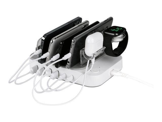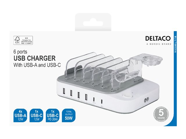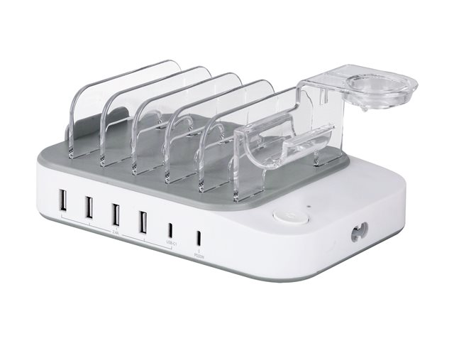 USB charging station, 4x USB-A, 2x USB-C, 50 W output, white