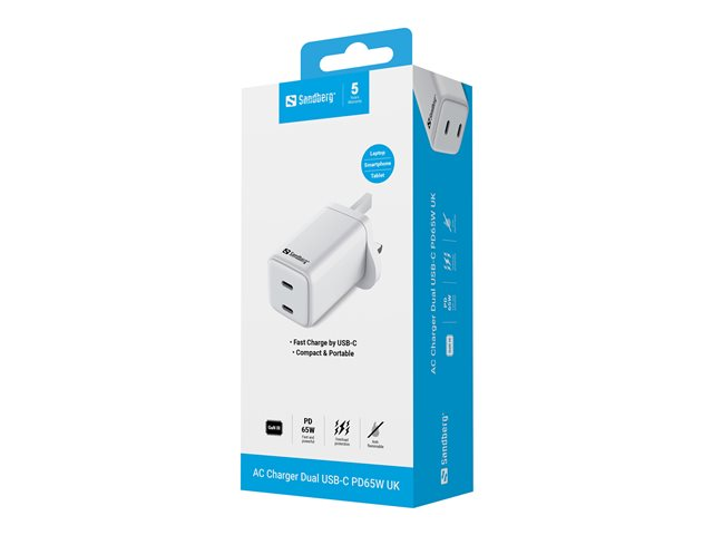 AC Charger Dual USB-C PD65W UK