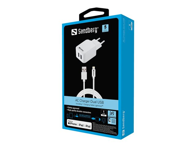 Sandberg AC Charger Lightning 2.4A är en praktisk liten laddare som du kan ansluta direkt till en smartphone eller surfplatta med ett Lightning-uttag. På så vis har du alltid en extra laddare till hands.