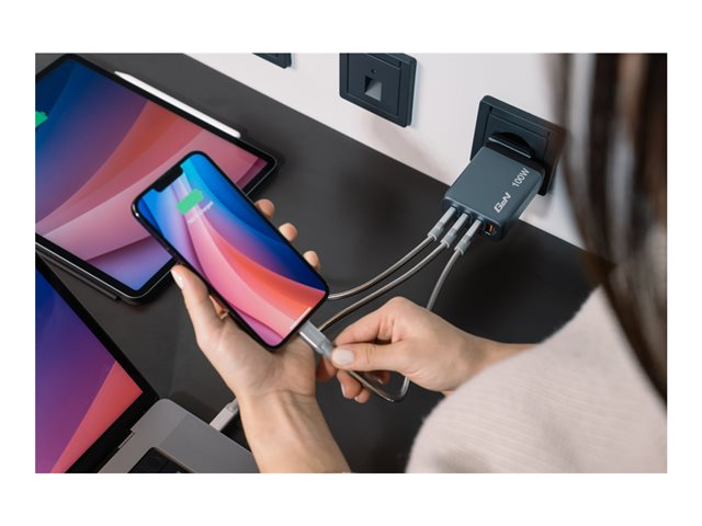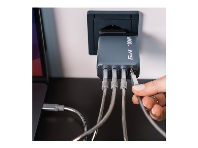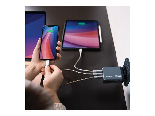 - Simultaneously charges up to 4 devices