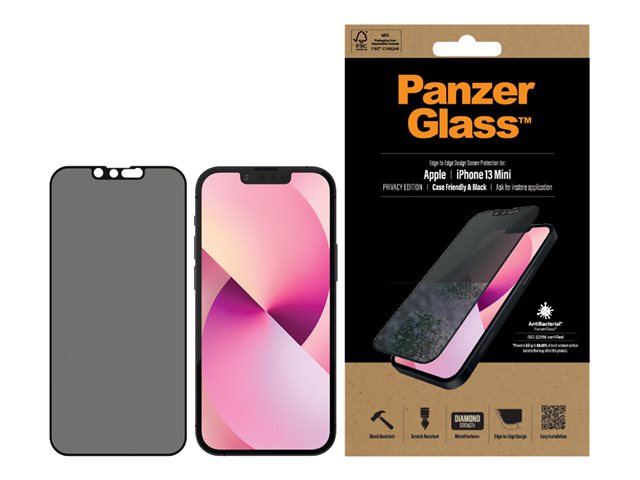 glas - med sekretessfilter - ramfärg svart - för Apple iPhone 13 mini