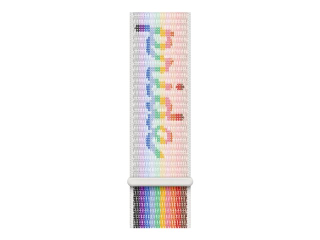 Den har samma design som Sport Loop-bandet, med ett dubbelt lager nylon tillverkat av mjuka tygtrådar som andas. För att få med Pride-inskriptionen har en del av de vävda fibrerna vävts om, vilket skapar en tredimensionell väv som är behaglig att se och känna på, medan kardborrbanden är ordentligt fästa i bandet för extra styrka. Den har ett praktiskt justerbart kardborreband. Apple är stolta över att ekonomiskt stödja organisationer som försvarar HBTQ+-gruppens rättigheter och kämpar för en positiv förändring i samhället.