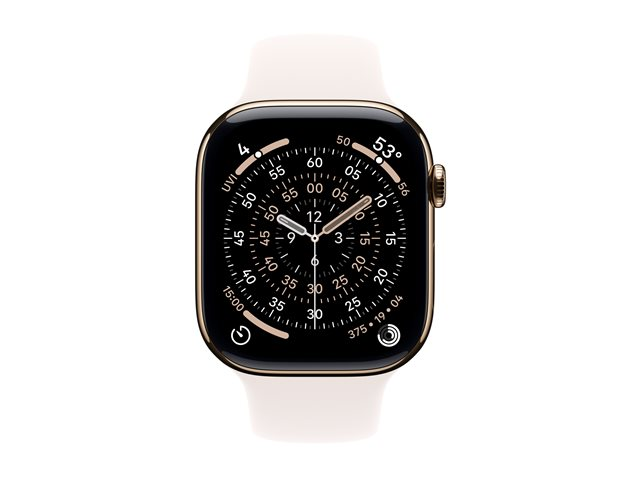 46 mm - guld titan - smart klocka med sportband - fluoroelastomer - lätt rouge - bandstorlek: M/L - 64 GB - LTE, Wi-Fi 4, UWB, Bluetooth - 5G - 43.1 g