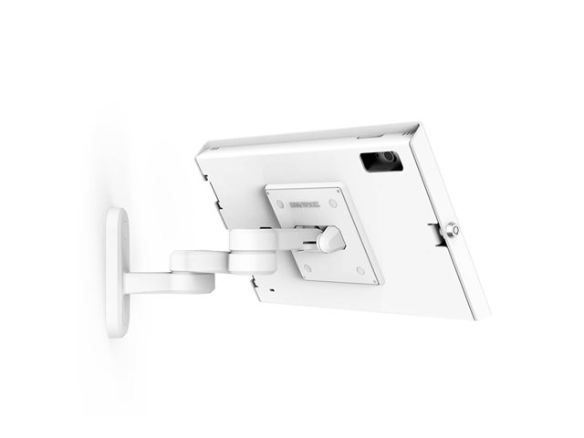 The Compulocks Apex mounting kit is designed for tablets, offering a versatile and secure solution for both wall and flat surface installations. Crafted from a durable metal frame, this kit includes a robust swing arm and an enclosure that provides reliable support, allowing for easy adjustments in pan, tilt, and swing. Integrated cable management ensures a neat and organized setup, while the lockable feature provides enhanced security with a key lock, making it ideal for various environments. With its vented design, the mounting kit promotes airflow, ensuring that devices remain cool and operational. This ergonomic design serves both residential and commercial purposes, making it a flexible addition to any space where tablet usage is essential. Overall, the Compulocks Apex mounting kit combines functionality, security, and stylish design to fit the demands of modern tablet use.