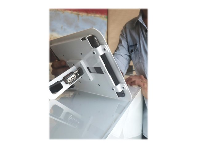 iPad Security Case 2.0 is made of light-weight aluminum, includes a concealed lock slot and a quality cable lock to secure the iPad. On the back of the case is a kickstand leg that enables both horizontal and portrait iPad display.