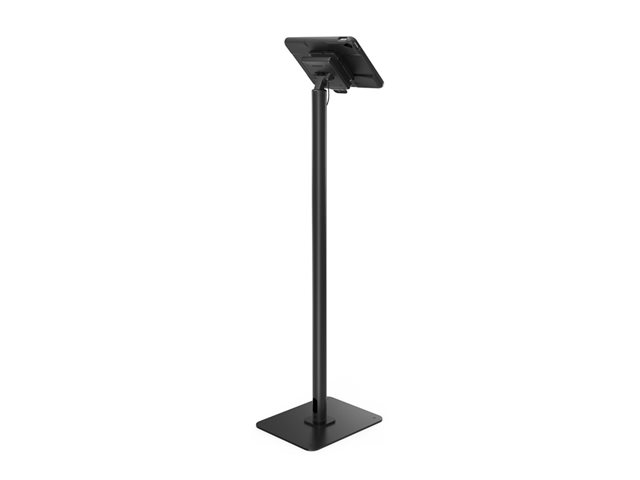 Integrated cable management keeps the workspace organized, reducing clutter and maintaining a clean aesthetic. The lockable design features a lift to release mechanism, providing security while allowing for access. Floor-standing placement makes this mounting kit a practical choice for public spaces and personal use, and it complies with ADA standards for accessibility.