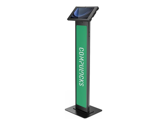 The Galaxy Tab S9/S9FE 10.9" Apex Enclosure Brandable Floor Stand Black by Compulocks is a premium solution for displaying your tablet in various settings. Crafted with a metal frame, this stand is not only durable but also offers a professional look that can be branded to suit your needs. It features a secure key lock to protect your device from unauthorized access, ensuring it stays safe in public spaces. The stand is designed to be freestanding or floor mountable, providing flexibility in how and where you display your tablet. Additionally, it comes with an internal lighting option and a tilting mounting plate, enhancing the visibility and interactivity of your display. Whether for exhibitions, retail, or corporate use, this stand combines security, functionality, and style to showcase your tablet effectively.