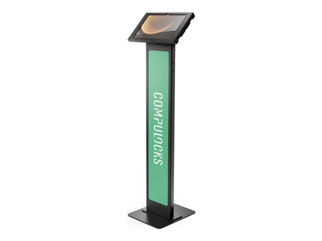 The Galaxy Tab S9+/S9FE+ 12.4" Apex Enclosure Brandable Floor Stand Black is an AV furniture solution designed to enhance the functionality and aesthetics of your space. Crafted with a durable metal frame, this stand not only provides a secure foundation for your tablet but also adds a modern touch to any setting. Its key lockable feature ensures your device remains safe, while the adjustable tilt mechanism offers the flexibility to find the perfect viewing angle. The stand's unique brandable panel allows for customized marketing, making it an excellent choice for businesses looking to increase brand visibility. Whether for presentations, interactive displays, or simply improving your viewing experience, this stand delivers both security and style.
