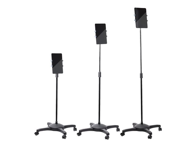 Detta rullande golvstativ för surfplattor är perfekt vid presentationer och rulla in din surfplatta i vårdmiljöer, utbildning, mässor, o.s.v. Stativet passar för surfplattor i storlekar från 7 till 11 tum (6,6 tum till 7,8 tum bredd), med en maximal tjocklek på upp till 10,5 mm. Använd det för din Apple iPad (inklusive 10,2 tums iPad and 11-tums iPad Pro) eller andra kompatibla surfplattor. Perfekt vid presentationer Detta surfplattestativ på hjul gör att du kan använda din surfplatta när du håller presentationer, så att du kan fokusera på dina åhörare och det innehåll du levererar. Du kan använda surfplattan som ett manus eller prompter utan att behöva hålla i den eller hela tiden titta ner i den när du pratar till publiken. Med låsbara hjul och en kraftig ställning erbjuder denna mobila surfplattehållare en bra balans mellan rörlighet och stabilitet, perfekt för fotografering, videoinspelningar och utbildningsmiljöer. Justerbar höjd och visningsvinkel Det ergonomiska surfplattestativet kan ställas in på en höjd mellan 92,5 cm till 146,8 cm över golvet så att du kan justera det till din perfekta höjd, oavsett om du sitter eller står. Denna helt justerbara surfplattehållare kan vrida, rotera och luta din surfplatta för att justera betraktningsvinkeln och minska belastningen på nacken, samtidigt som du förbättrar din ergonomiska arbetsställning. Portabel löstagbar hållare för surfplatta Det universella surfplattestativet levereras med en löstagbar hållare för surfplattan. Om du behöver hålla surfplattan i händerna tar bara bort hållaren från stativet och tar surfplattan med dig. STNDTBLTMOB är TAA-kompatibel och täcks av StarTech.coms 5-årsgaranti och gratis livstidsgaranti på teknisk support.
