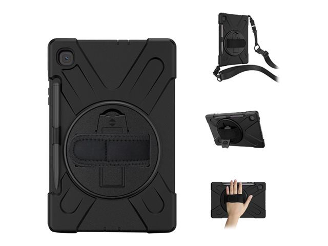 Shockproof cover designed for every day use. It is equipped with a built-in screen protector, pencil slot as well as a kick stand. Furthermore, it is delivered with a shoulder strap should you wish to carry the tablet in an easy way. The raised sides on both the front and around the camera hole offer better drop protection for the camera and the front glass. All buttons are protected, but can easily be operated as well as there is easy access to all ports. The three layer cover includes a hard PC inner cover (2 parts), a silicone skin as well as a front cover glass.