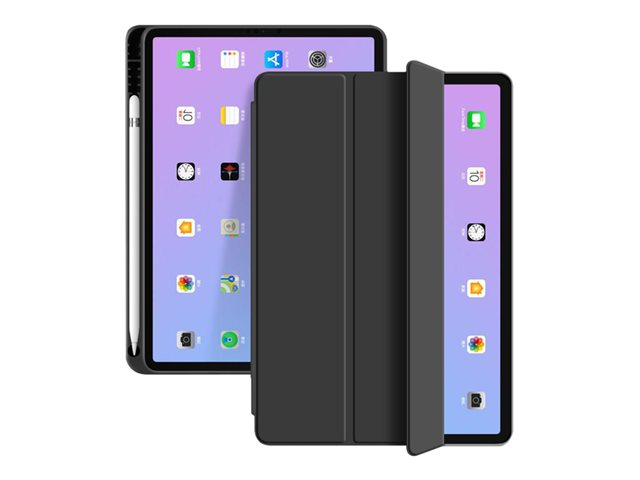 This case has a built-in slot to keep the Apple pencil in. The pencil case is ultra slim and consists of a soft TPU back cover and a magnetic front cover. It is crafted to give full protection of the tablet and the pencil. The TPU back ensures that the case does not easily break if dropped and it protects the tablet better than a case with a hard back against bumps, drops and scratches. The slim, foldable front cover with microfibre lining is magnetic and supports the auto wake/sleep function as well as it offers two stand modes.