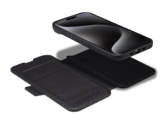 Screenor First läderfodral har ett praktiskt magnetiskt stängningssystem och tunna kortfack på insidan för att hålla dina viktigaste kort till hands.