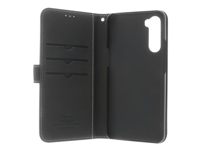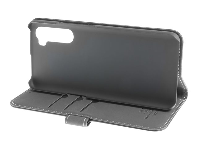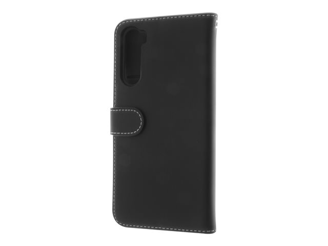 Vikbart fodral för mobiltelefon - genuint läder, papper, kartong, polykarbonat, aluminiumfolie - svart - för OnePlus Nord