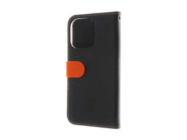 genuint läder, kartong+papper+aluminiumfolie, polykarbonat (PC), bomullssömmar - svart/orange - för Apple iPhone 16 Pro