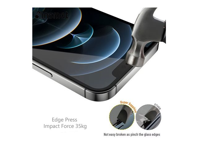 The Insmat screen protector offers reliable protection for cellular phones, designed to meet the demands of modern users. Made from high-quality tempered glass, this protector features a 9H hardness rating, ensuring it can withstand impacts and daily wear while remaining clear. Its oleophobic coating repels fingerprints and smudges, providing a clean view of your device's display. Along with easy and dust-free installation facilitated by the included No-DUST frame and cleaning cloths, the screen protector is engineered for a full cover that enhances durability without compromising on style.
