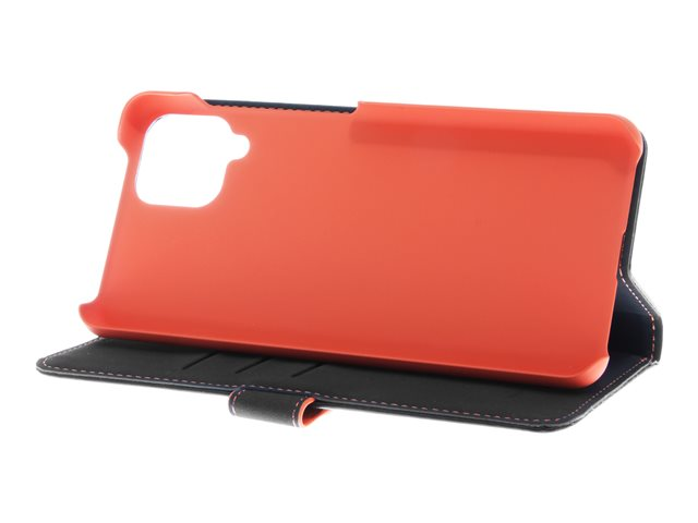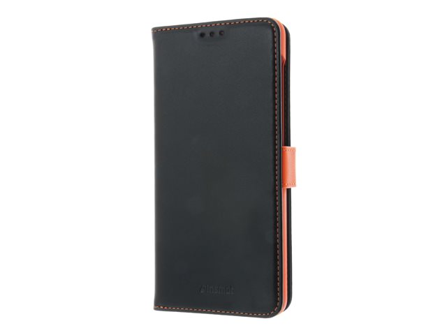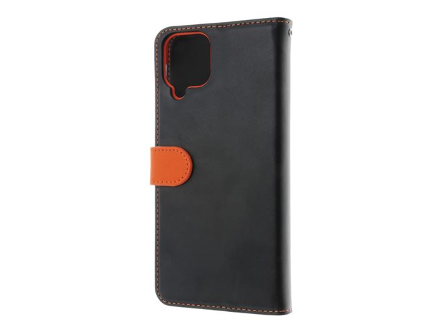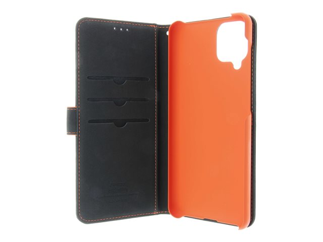 genuint läder, termoplastisk polyuretan (TPU), polyuretanklädsel - svart, orange, galvaniserad bronsring - för Samsung Galaxy A12