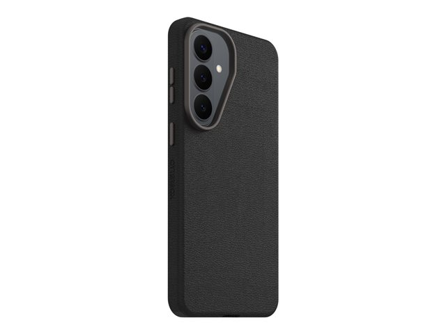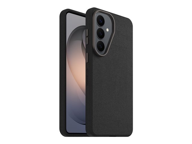 The OtterBox Symmetry Series Cactus Leather carrying case is designed to provide protection for cell phones while maintaining an ultra-sleek appearance. Constructed from durable cactus leather and polyurethane, this back cover showcases a stylish look and includes raised edges to safeguard the device's screen and camera. Enhanced with metal buttons for easy access and wireless charging capabilities, this case combines functionality with eco-friendliness, utilizing 45% recycled content made from recycled plastic. Meeting MIL-SPEC 810G-516.6 standards, this protective cover ensures reliability in various conditions.