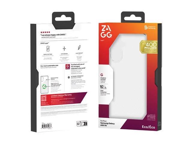 Luxe is the lightweight, stylish case designed for Samsung A56 5G, fortified with Graphene, one of the strongest materials on Earth. Proven to protect your phone from drops up to 10 feet (3 meters), Luxe offers exceptional durability without the bulk. Made with up to 100% post-consumer recycled materials, it's both eco-friendly and tough. The slim, ergonomic design fits easily in your pocket and feels comfortable in your hand. Luxe is also fully compatible with most wireless chargers. Protect your Samsung with the strength and style it deserves.