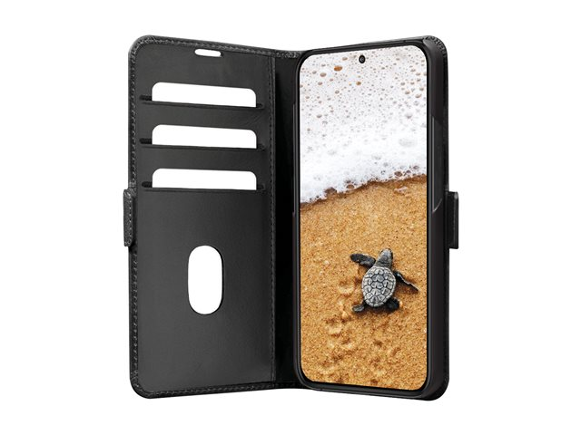 Vikbart fodral för mobiltelefon - narvat läder - svart - för Samsung Galaxy S25+