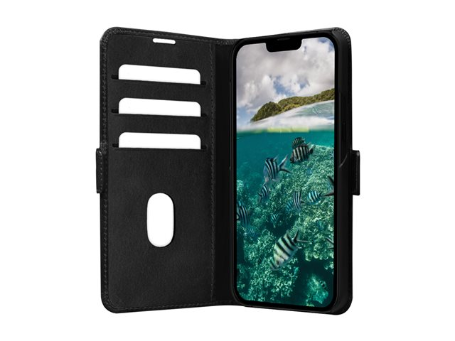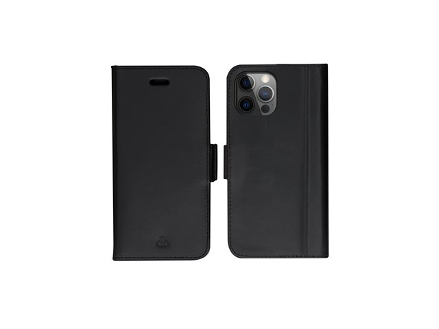 Vikbart fodral för mobiltelefon - narvat läder - svart - för Apple iPhone 12, 12 Pro