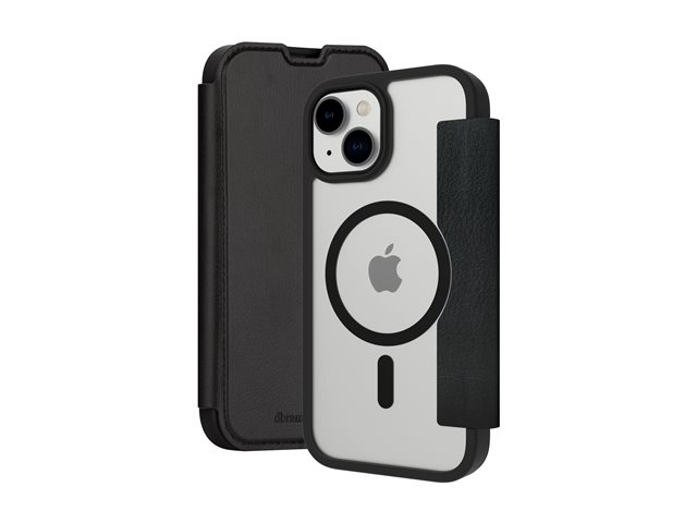 Vikbart fodral för mobiltelefon - MagSafe-kompatibilitet - konstläder, plast - klar, svart - för Apple iPhone 15 Plus
