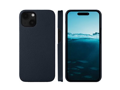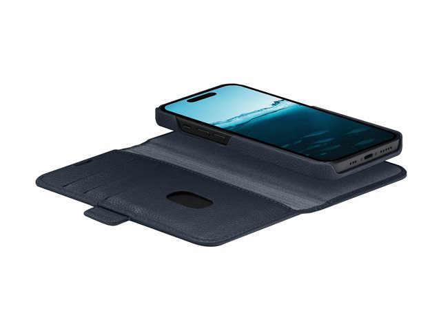 Vikbart fodral för mobiltelefon - fullnarvat knottrigt läder - havsblå - för Apple iPhone 15 Plus