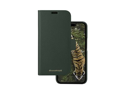 Vikbart fodral för mobiltelefon - fullnarvigt präglat läder - evergreen - för Apple iPhone 13, 14, 15, 16e, 17e