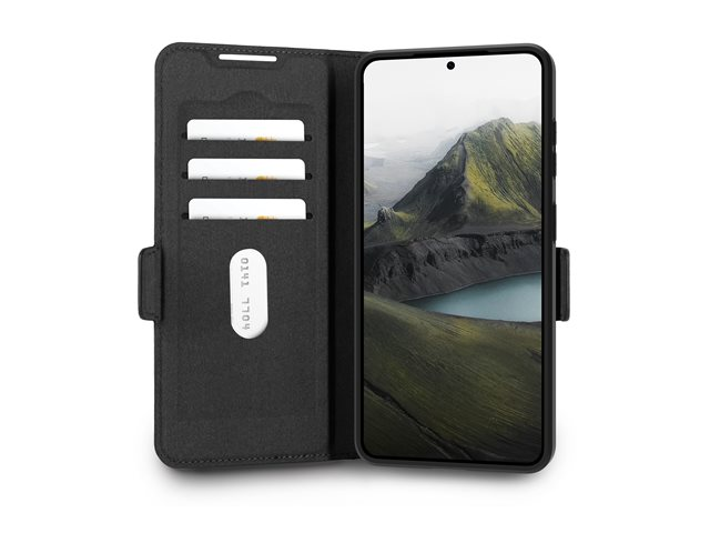 The dbramante1928 Oslo Pro is a meticulously designed protective cover for cell phones, ensuring both style and functionality. Crafted from recycled plastic, this slim folio wallet case features a leather effect finish that supports wireless charging, keeping the device powered without the hassle of cords. Equipped with three card slots and a magnetic closure, this case allows for convenient access to essential items while providing protection against impacts. Its flip cover design includes a stand function, making it suitable for watching videos or video calls. The dbramante1928 Oslo Pro is an eco-friendly choice, embodying a commitment to sustainability with 100% recyclable materials.