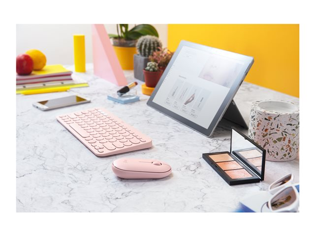 Mus - optisk - 3 knappar - trådlös - 2.4 GHz, Bluetooth - trådlös USB-mottagare - rosa
