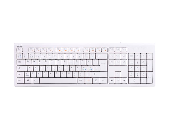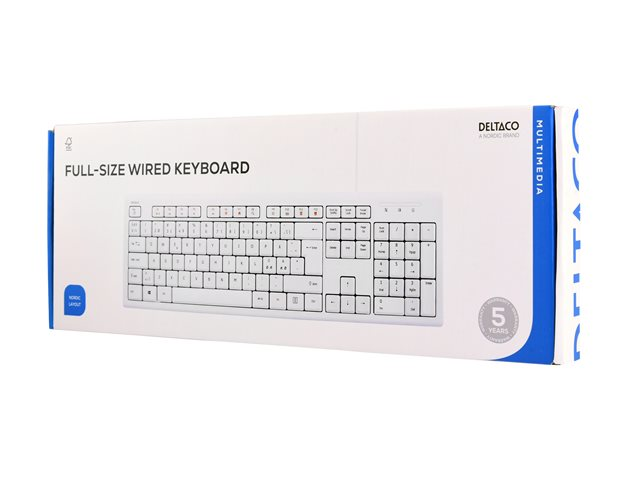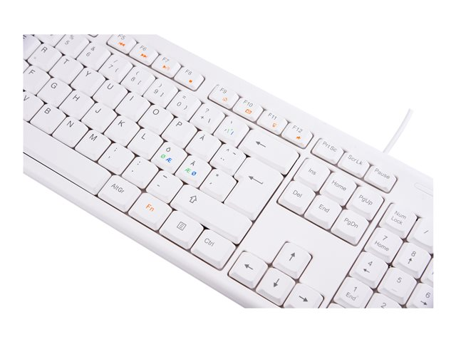 Keyboard, 105 keys, Nordic layout, USB, white, 13 media keys