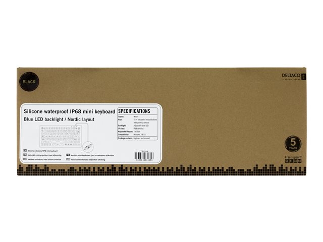 Vattentätt silikontangentbord med blå LED-bakgrundsbelysning. Perfekt för alla situationer och miljöer där vätskor kan komma i kontakt med elektronik. Det här tangentbordet har en membranbrytare med förväntat två miljoner tangenttryckningar i sin livslängd. IP68 certifierad; fullständigt damm- och smutssäkrad samt resistent mot vatten och andra vätskor.