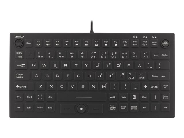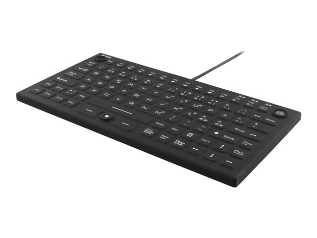 Mini Silicone keyboard, spill proof, blue LED, IP68, black