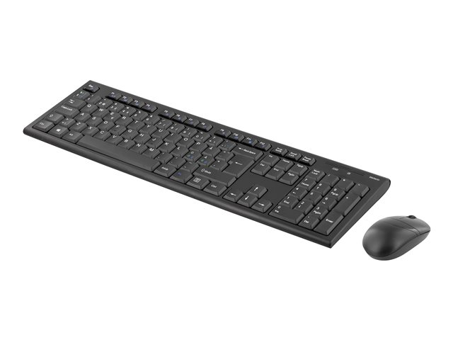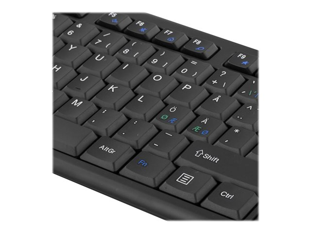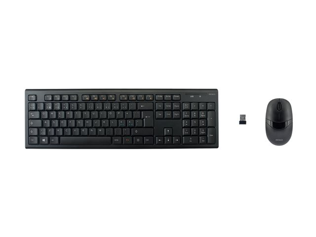 Trådlöst tangentbord och mus, 105 tangenter, nordisk layout, 2. 4GHz USB nano mottagare, svart. Trådlöst tangentbord och optisk mus med 3 knappar med scroll. Med automatisk parning behöver du bara ansluta USB-adaptern i önskat uttag i datorn för att få allt att fungera.