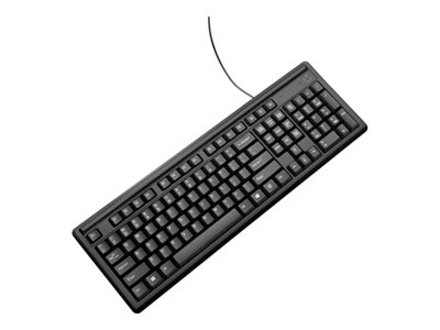 - Levereras med ett komplett utbud av 107 tangenter inklusive 12 funktionstangenter och 3 snabbtangenter.