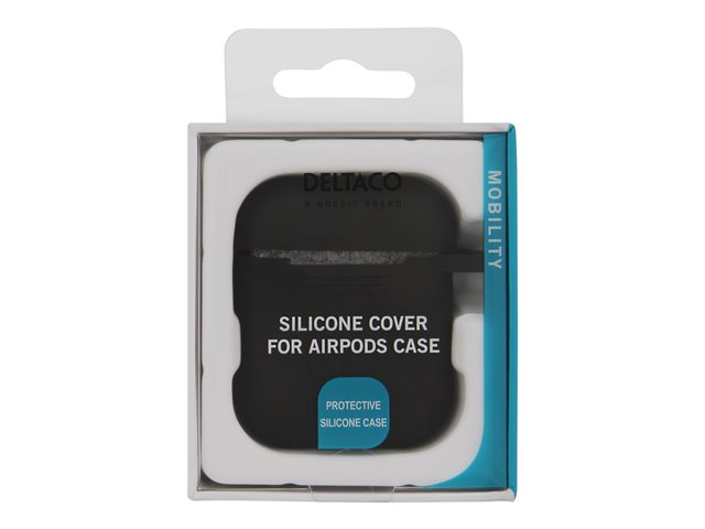 Håll dina AirPods skyddade från dropp och repor med detta silikonskal från DELTACO. För bara ner AirPods laddningsetuiet i silikonskalet och du är redo att ge dig ut. Silikonskalet är tjockt nog för att motverka skador från fall men samtidigt smalt nog så att du fortfarande kan ha dina AirPods i fickan.