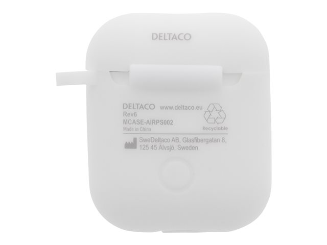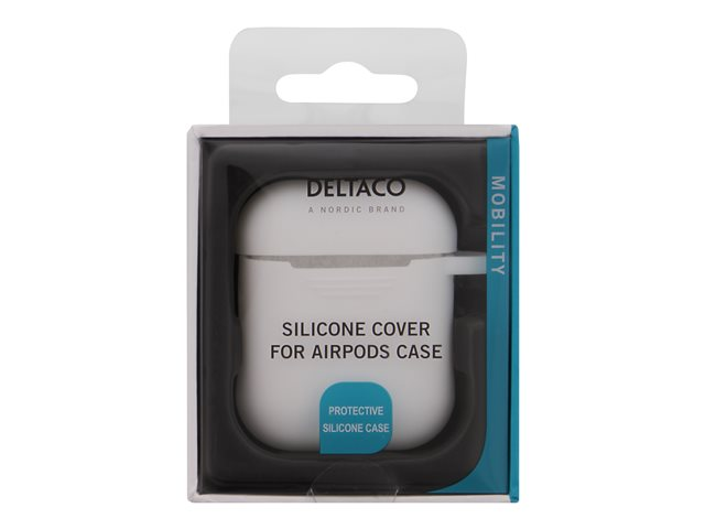 Håll dina AirPods skyddade från dropp och repor med detta silikonskal från DELTACO. För bara ner AirPods laddningsetuiet i silikonskalet och du är redo att ge dig ut. Silikonskalet är tjockt nog för att motverka skador från fall men samtidigt smalt nog så att du fortfarande kan ha dina AirPods i fickan.