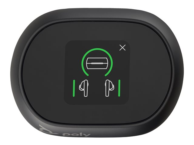 - Fjärrstyr hörlurarna via laddningsfodralets pekskärm, växla mellan Bluetooth -anslutningar, anslut trådlöst till underhållningssystem på flyget och ladda hörlurarna två gånger.