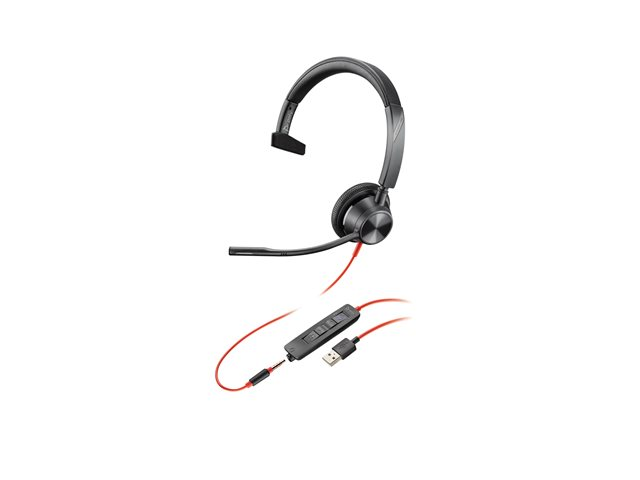 Blackwire 3300 series - headset - på örat - kabelansluten - 3,5 mm kontakt, USB-A - svart - Certifierad för Microsoft-teams