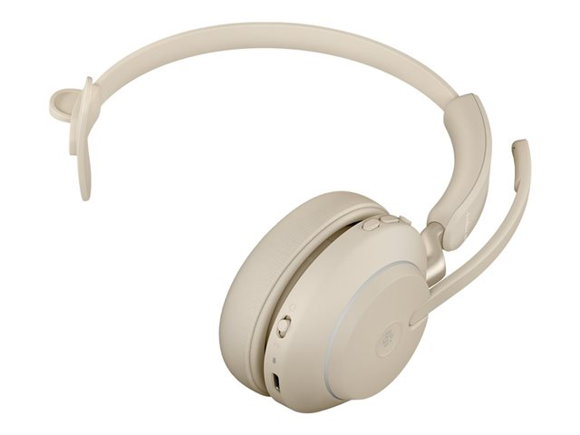 Evolve2 65 headset beige MS, Link 380 BT adapter USB-C, 1.2m USB-C to USB-A Cable, Carry case, Warranty and warning (safety leaflets)