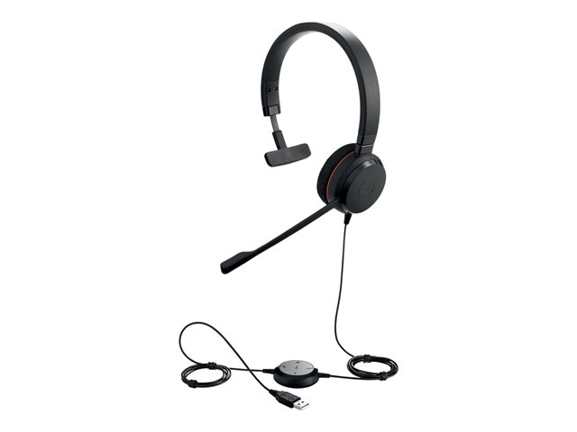 Jabra EVOLVE 20 MS Mono USB Headband, Noise cancelling,USB connector, with mute-button and volume control on the cord, with foam ear cushion, Microsoft optimized