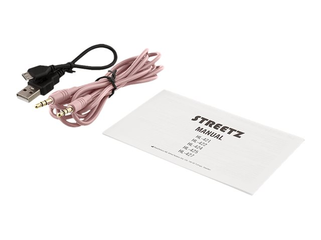 Stilrent on-ear headset från STREETZ med vikbar design, hög ljudkvaliet och mjuka öronkuddar som är bekväma även vid långvarig användning. Anslut via Bluetooth 5 eller med den medföljande 3.5 mm ljudkabeln för upp till 10 timmars oavbruten musik. Kontrollknappar finns på ena kåpan för uppspelning, låtbyte och volym. Den vikbara designen är platsbesparande och ser till att dom är lätta att packa i väskor och andra förvaringsutrymmen. Hörlurarna laddas enkelt upp via den inkluderade mikro-USB kabeln.