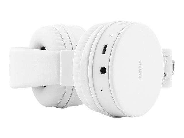 Stilrent on-ear headset från STREETZ med vikbar design, hög ljudkvaliet och mjuka öronkuddar som är bekväma även vid långvarig användning. Anslut via Bluetooth 5 eller med den medföljande 3.5 mm ljudkabeln för upp till 10 timmars oavbruten musik. Kontrollknappar finns på ena kåpan för uppspelning, låtbyte och volym. Den vikbara designen är platsbesparande och ser till att dom är lätta att packa i väskor och andra förvaringsutrymmen. Hörlurarna laddas enkelt upp via den inkluderade mikro-USB kabeln.