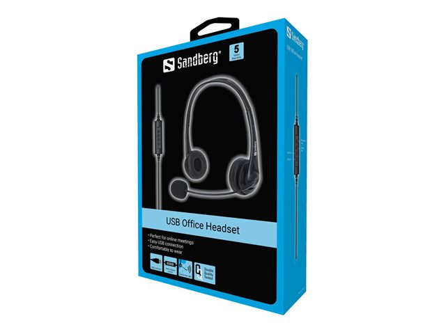 Sandberg USB Office Headset, Kabel, Kontor/callcenter, 20