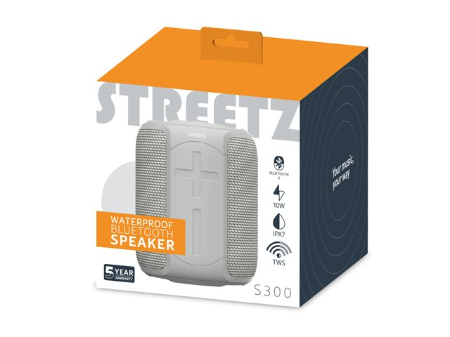 Kraftfull och snygg, bärbar och trådlös. Med denna vattentåliga högtalare i stilren tygdesign från Streetz kan du välja mellan flera olika anslutningsalternativ BT 5.0 med 10 m räckvidd, micro-SD kort upp till 128 GB eller vanlig 3.5 mm ljudkabel. Utrustad med 2x 5 W högtalare för ett kraftfullt och tydligt ljud så att du kan njuta av din favoritmusik i upp till 10 timmar, vart än du befinner dig. Denna högtalare har TWS (True Wireless Sound) -funktionalitet. Det betyder att två högtalare kan kopplas ihop med varandra trådlöst och fungera som ett 2.0 högtalarsystem. Obs! Detta fungerar bara tillsamans med CM765 & CM766!.