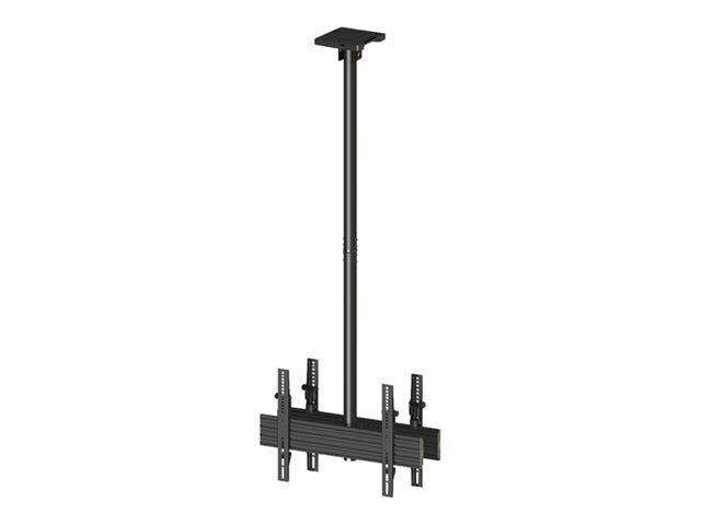 Monteringssats (takplatta, skyddslock för takplatta, 4 lutningsarmar, 2 stångklämmor, 2 skenor, 2 förlängningsrör (80 cm)) - för 2 LCD-bildskärmar - aluminium, stål - svart - skärmstorlek: 40"-65" - takmont