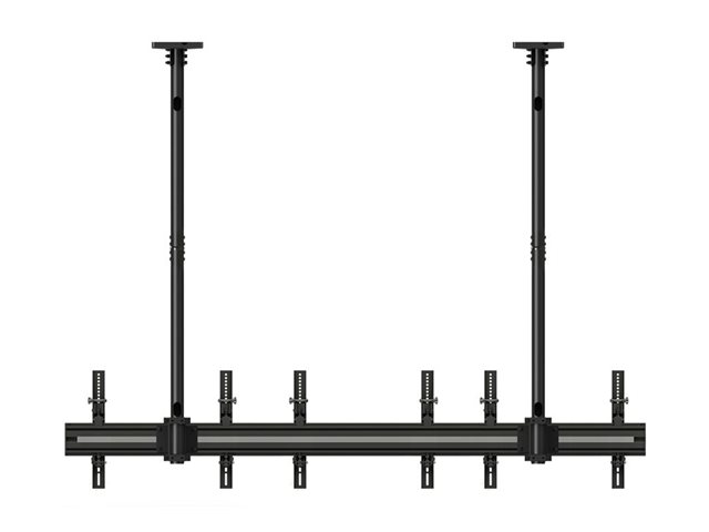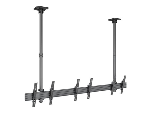 Monteringssats (2 takplattor, 4 skenor, 2 stångklämmor, 6 lutningsarmar, 8 förlängningsrör (80 cm), 2 skydd för takplattor) - för 3 LCD-bildskärmar - aluminium, stål - svart - skärmstorlek: 40"-65" - takmon