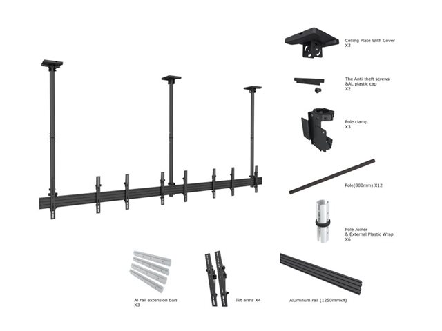 Fäste - aluminium, stål - svart - skärmstorlek: 32"-65" - takmonterbar