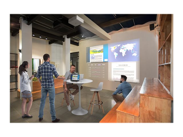 Till skillnad från platta bildskärmar finns inga störande reflexer, fingeravtryck eller bortslösat väggutrymme. Bilden kan skalas så att den passar önskad bildstorlek, från 50 till 500 tum. Oavsett om projektorn används för utbildning, företag, detaljhandel eller besöksattraktioner blir tittarupplevelsen obegränsad och mer engagerande för publiken.