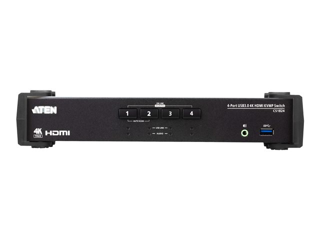 ATEN 4-portars USB 3.0 4K HDMI KVMP™ Switch med ljudmixerläge, 4096 x 2160 pixlar, 4K Ultra HD, 2,535 W, Svart